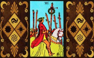 Сімка жезлів – це символ спритності, перемагаючої сили. На карті зображено чоловіка з жезлом у руці.